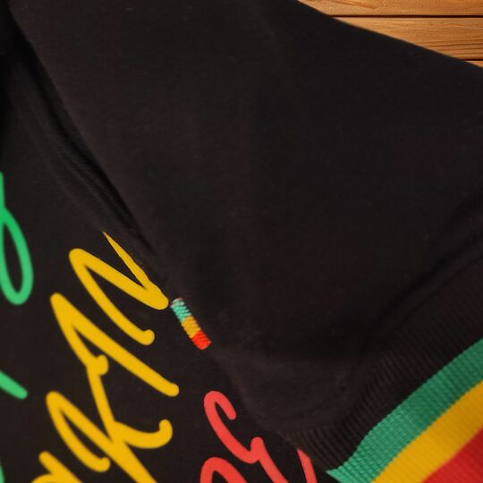 Rasta / Reggae-colored ribbing on the sleeves and bottom of the hoodie adds character and brings a touch of our favorite atmosphere to your style.