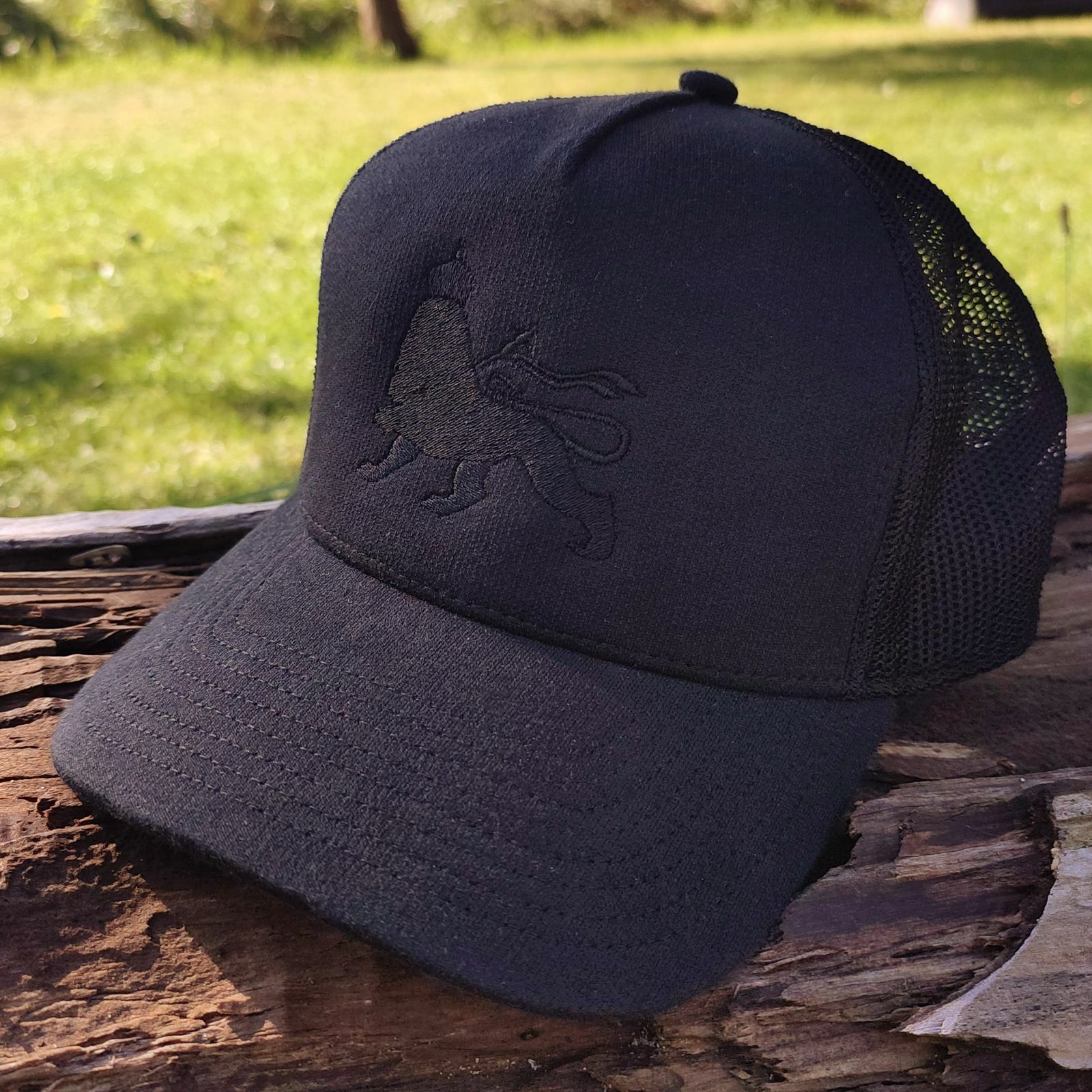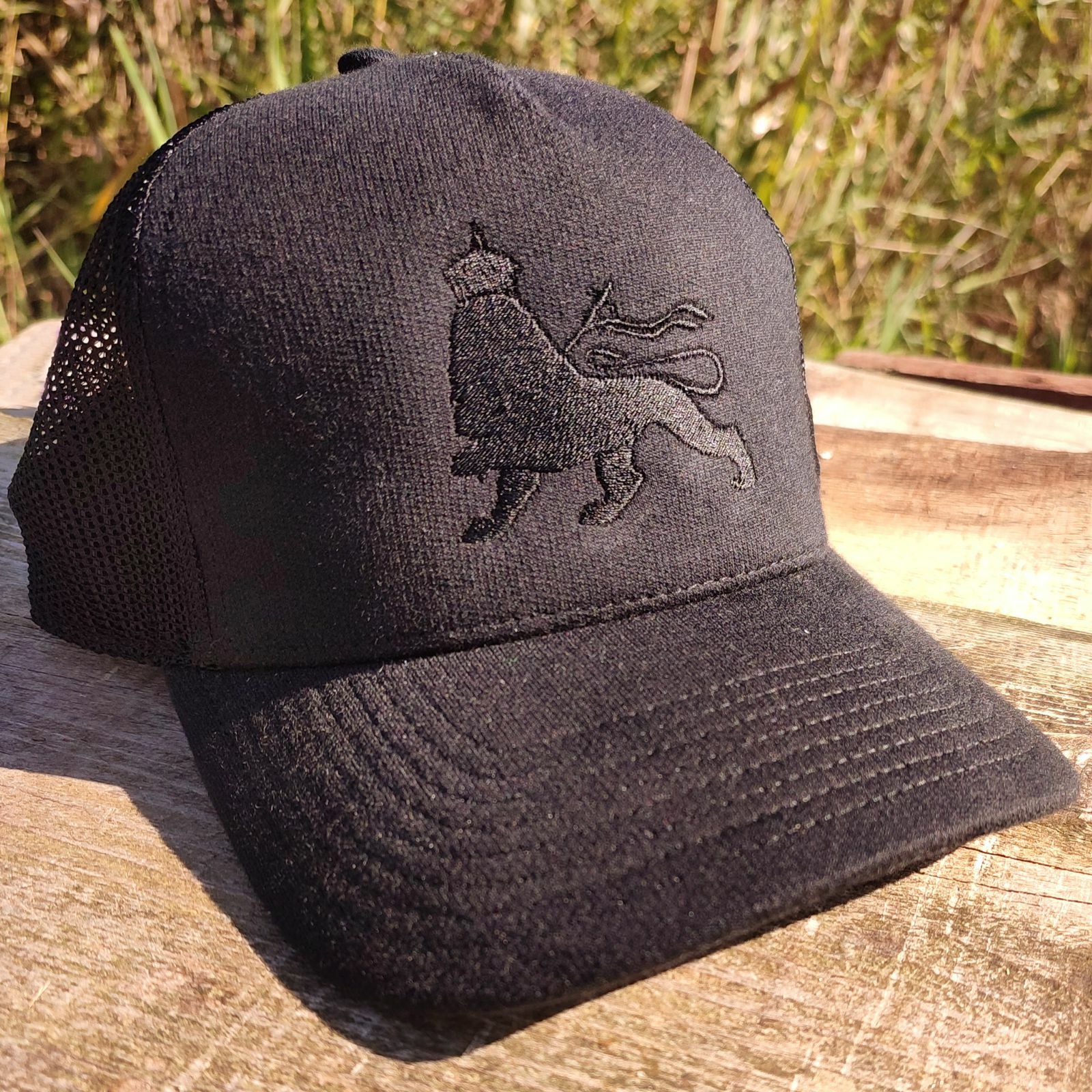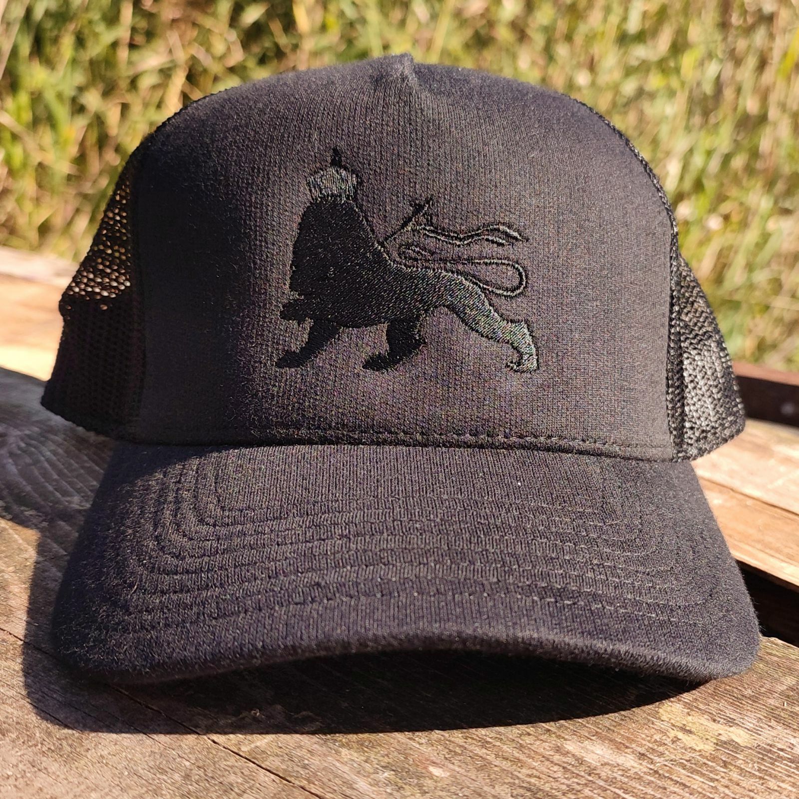Klasyczna czarna czapka truckerka charakteryzuje się solidną, 5-panelową konstrukcją, która zapewnia wytrzymałość i komfort noszenia. Tył i boki wykonane są z lekkiej siateczki nylonowej, zapewniając przewiewność. Z przodu znajduje się staranny, duży haft przedstawiający Lwa Judy, symbol siły i odwagi. Daszek jest profilowany, co dodaje całości eleganckiego wyglądu.