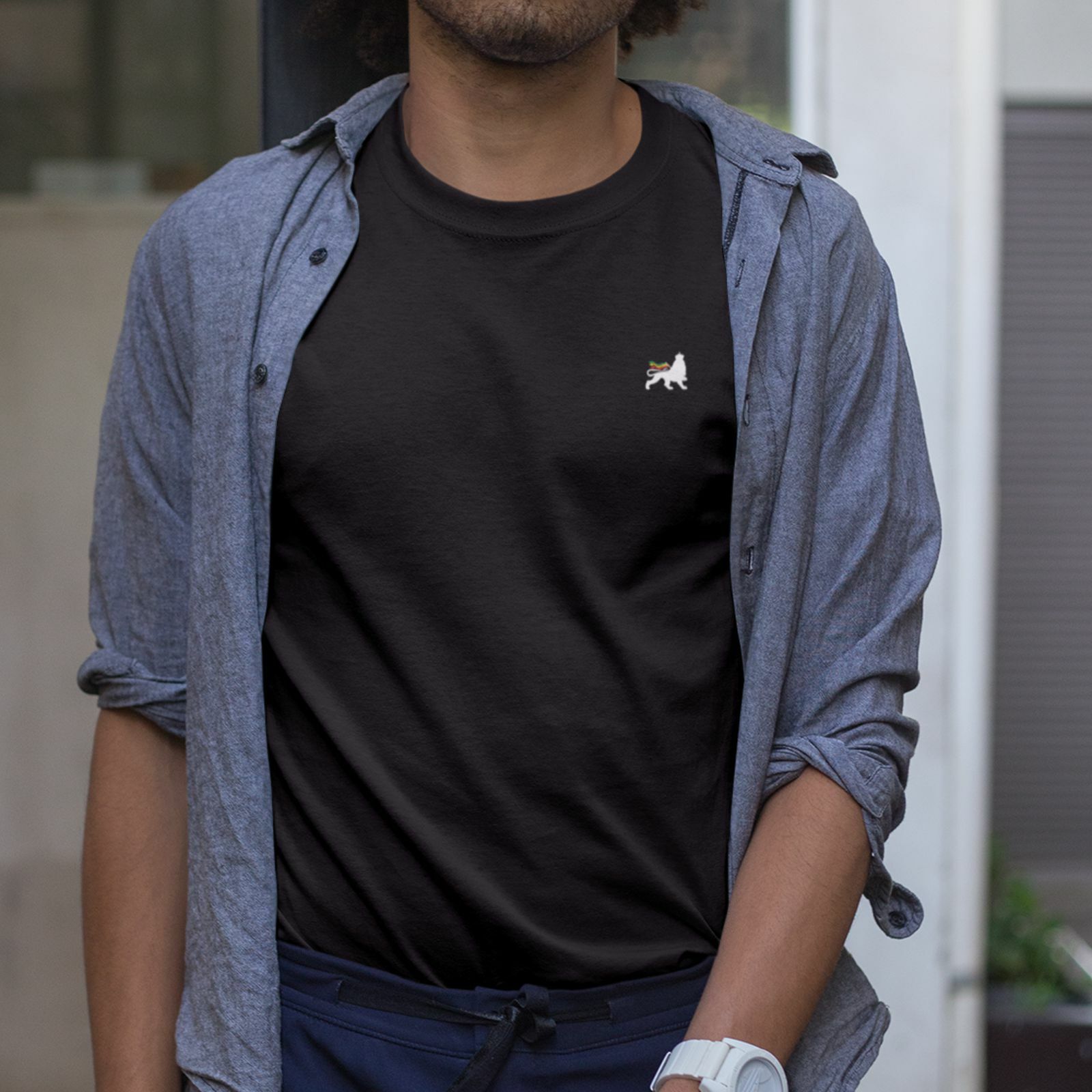 Na piersi koszulki znajdziesz dyskretne logo z Lew Judy, ale tym razem z lekkim akcentem w barwach Reggae i jest mniejszy. To zmiana względem wcześniejszej wersji, gdzie lew był jednokolorowy.